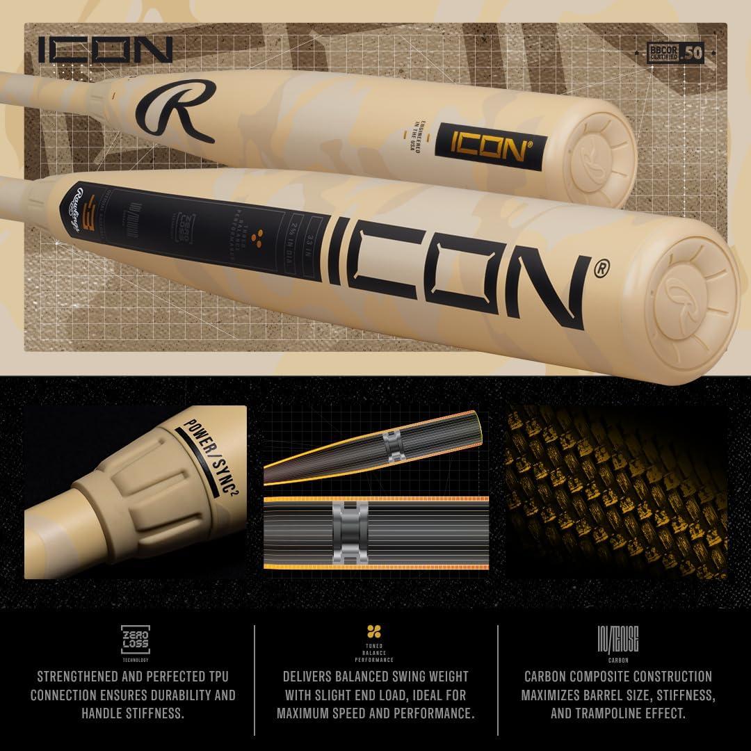 Rawlings | 2025 | ICON Baseball Bat | BBCOR | -3 Drop | 2 5/8′ Barrel | 2 Pc. Composite(Tan Camo)
