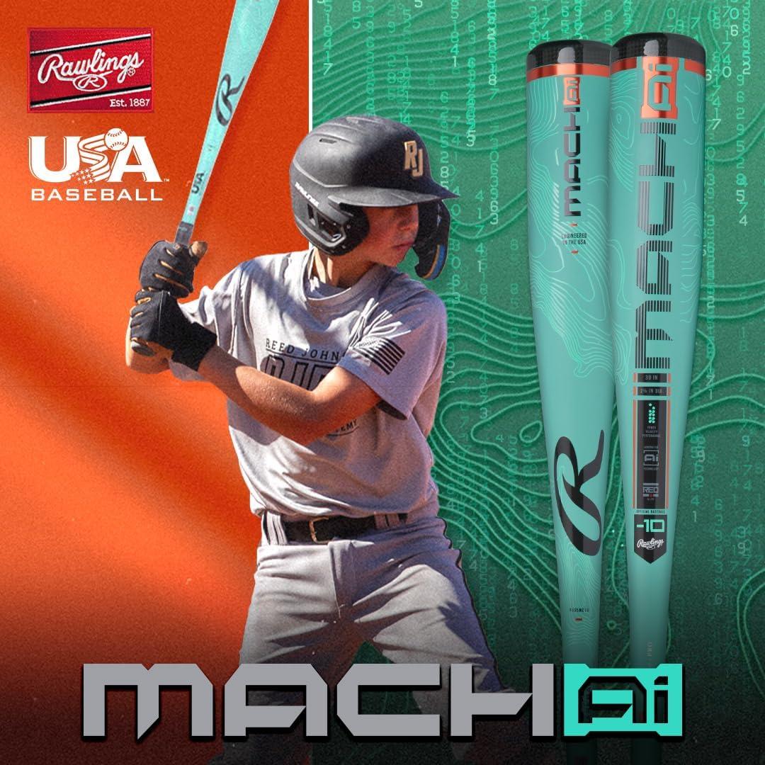 Rawlings | 2025 | MACH AI Baseball Bat | USA | -10 Drop | 2 5/8″ Barrel | 1 Pc. Hybrid(28 inch)