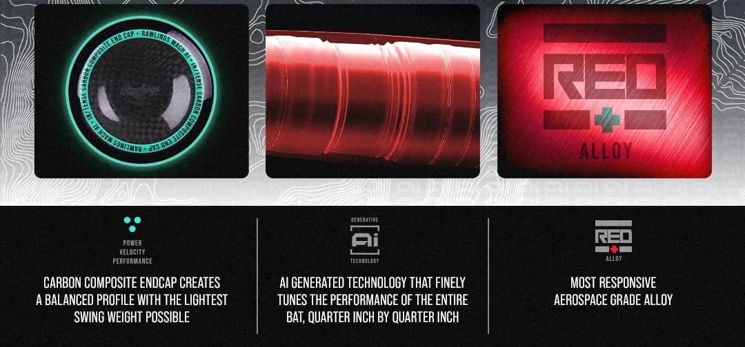 Introducing the 2025 Rawlings Mach Ai, a revolutionary bat for USSSA baseball with a striking new design and innovative technology. Its patent-pending AI-generated barrel contours meticulously optimize each quarter inch, delivering an unparalleled balance of power, swing weight, and forgiveness. Experience the future of baseball bats with this AI-driven performance.