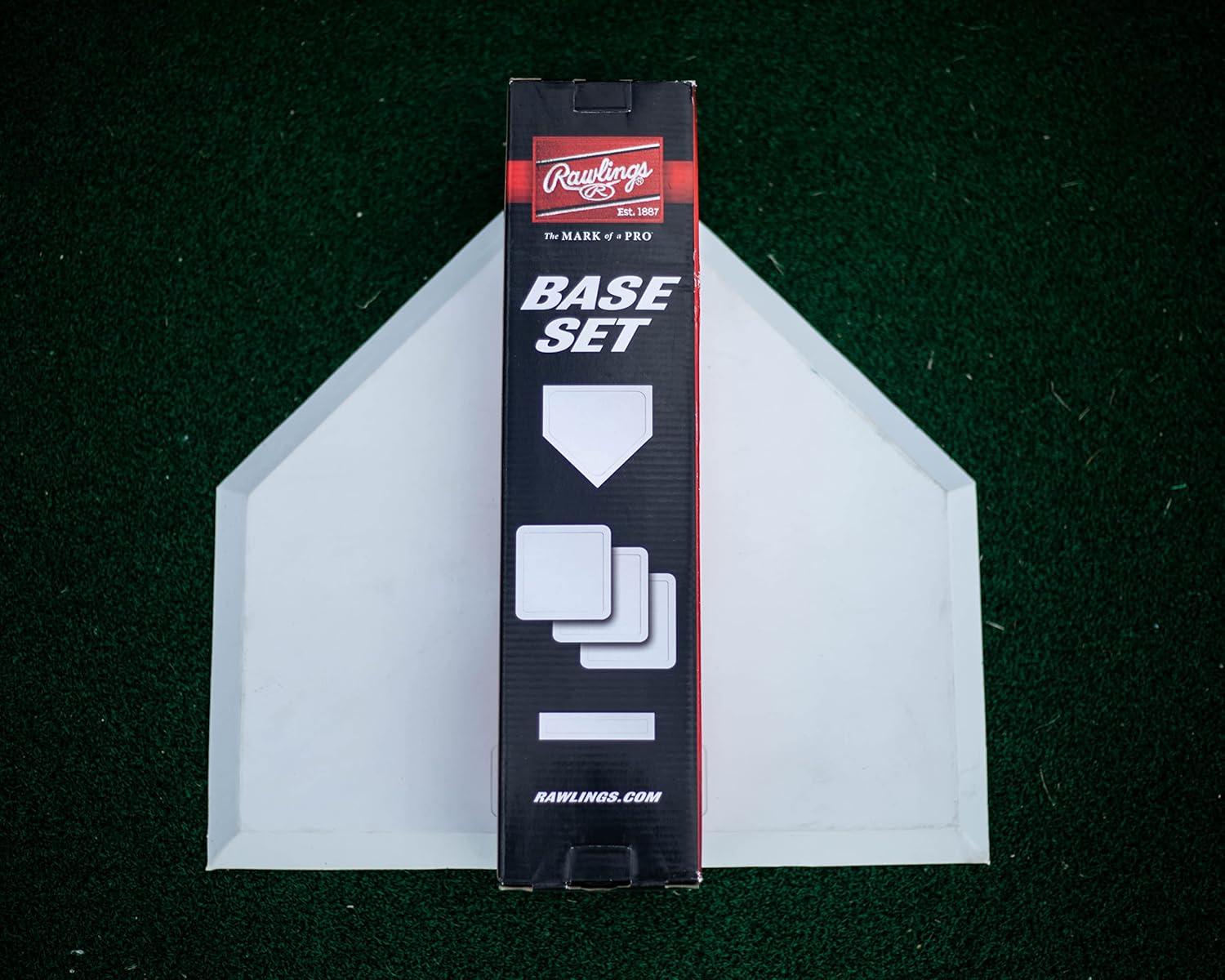 Ideal for the practice field or backyard use, the Rawlings Thrown Down Base Set makes it easy to set up a field quickly. Three bases, home plate, and pitcher's rubber included.