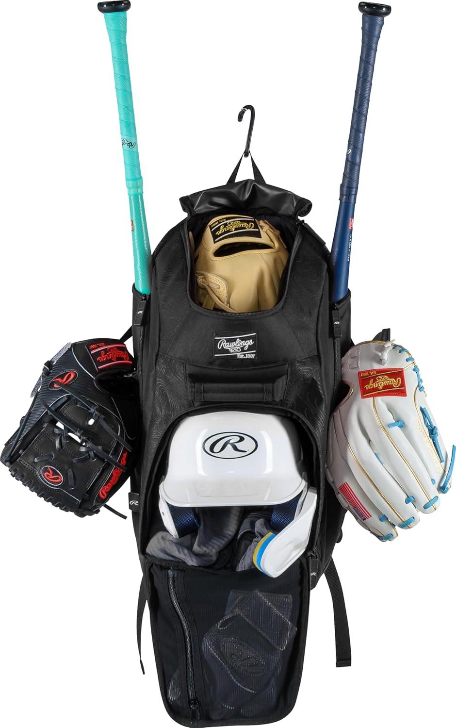Rawlings | FRANCHISE 2.0 Player’s Backpack | Baseball/Softball | Rec/Travel | Multiple Styles | Baseball/Softball, Rec/Travel(BLACK)