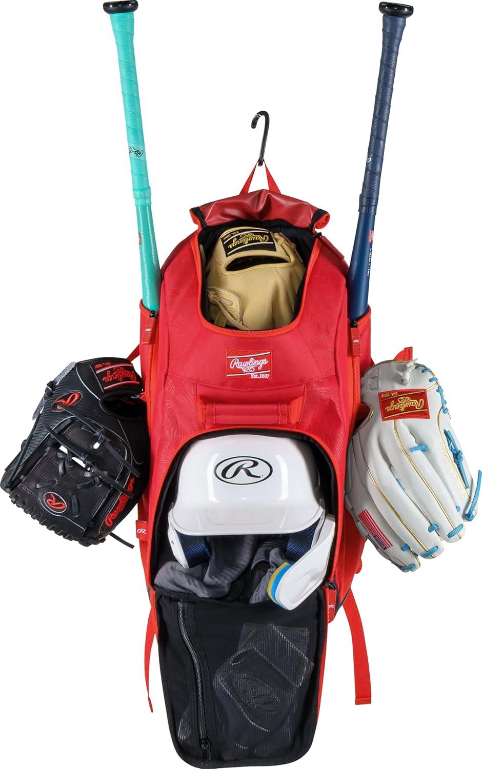 Rawlings | FRANCHISE 2.0 Player’s Backpack | Baseball/Softball | Rec/Travel | Multiple Styles | Baseball/Softball, Rec/Travel(SCARLET)