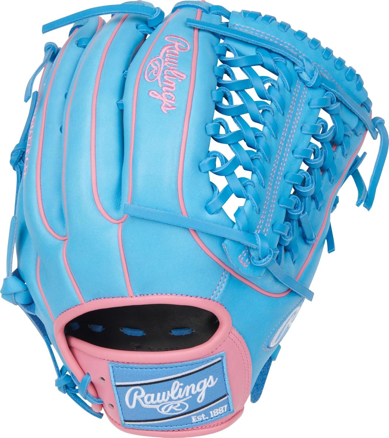 Rawlings | Heart of The Hide Baseball Glove | Traditional Break-in | Sizes 11.25″ – 12.75″ | Multiple Styles(Columbia Blue / Pink | Modified Trap-Eze Web)