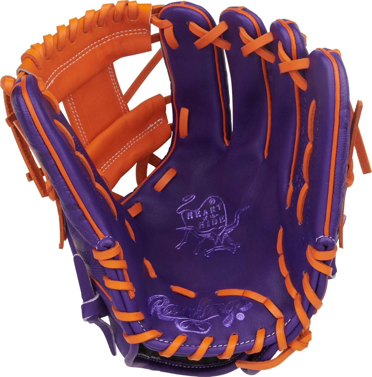 Rawlings | Heart of The Hide Baseball Glove | Youth Contour Fit Models | Advanced Break-in | Sizes 11.5″ – 12.5″ | Multiple Styles(Purple / Orange | Pro I Web)