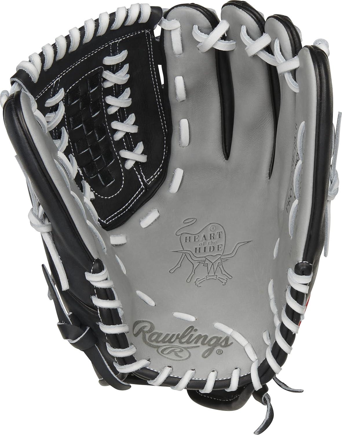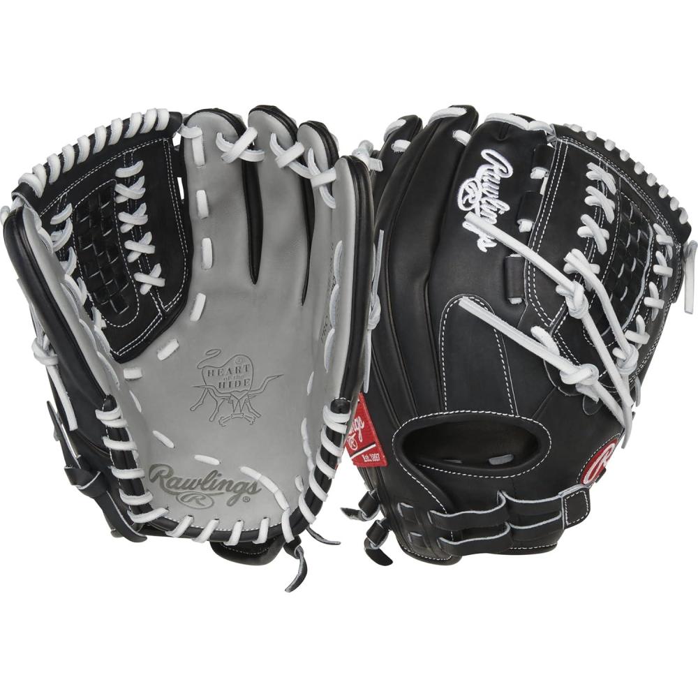 Rawlings | Heart of The Hide Fastpitch Softball Glove | Sizes 11.75″ – 12.75″ | Multiple Styles(Black / Grey | Double-Laced Basket Web)