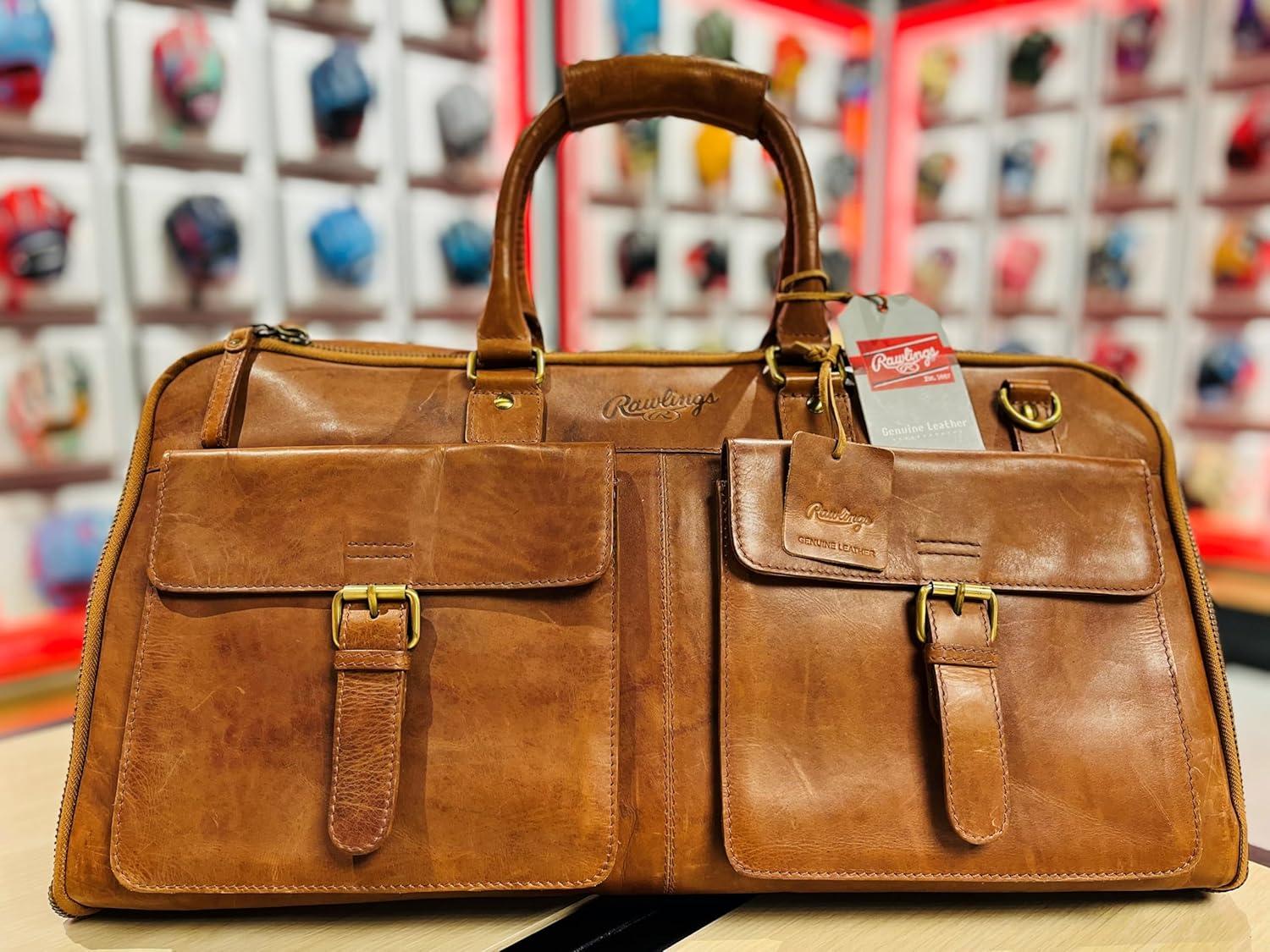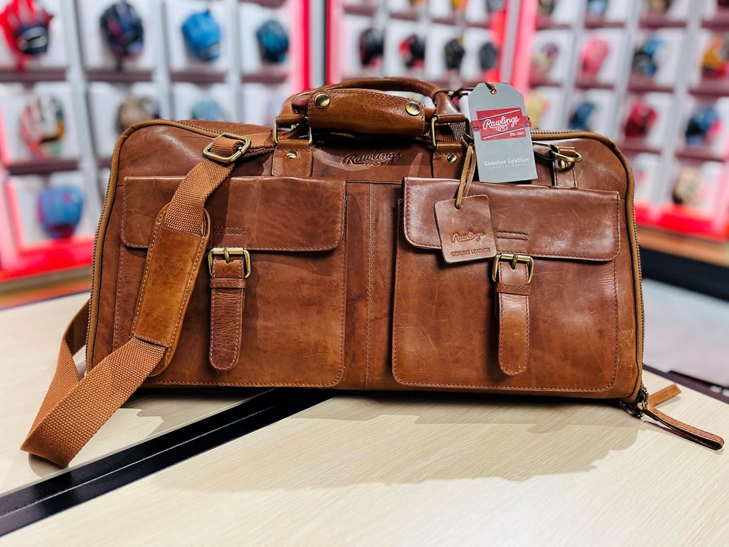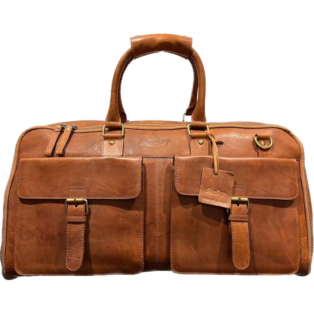 Rawlings | Leather Weekender Duffle Bag Collection | Genuine Leather | Multiple Styles & Colors(Light Brown | Classic Collection)