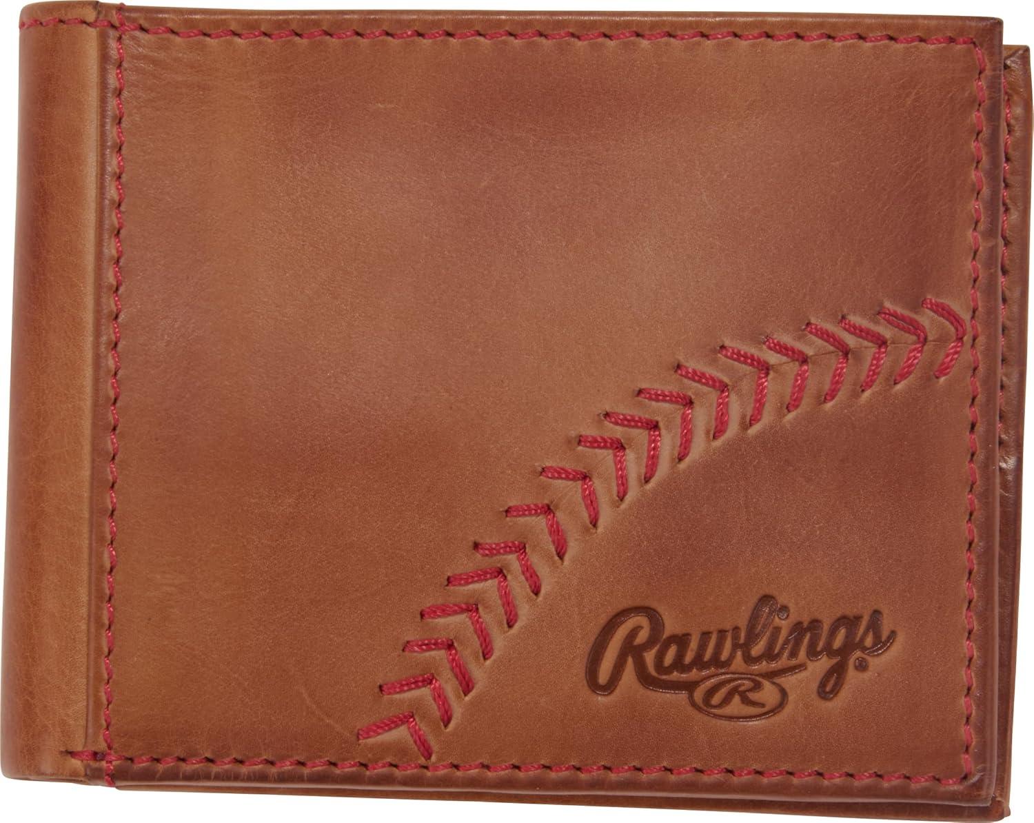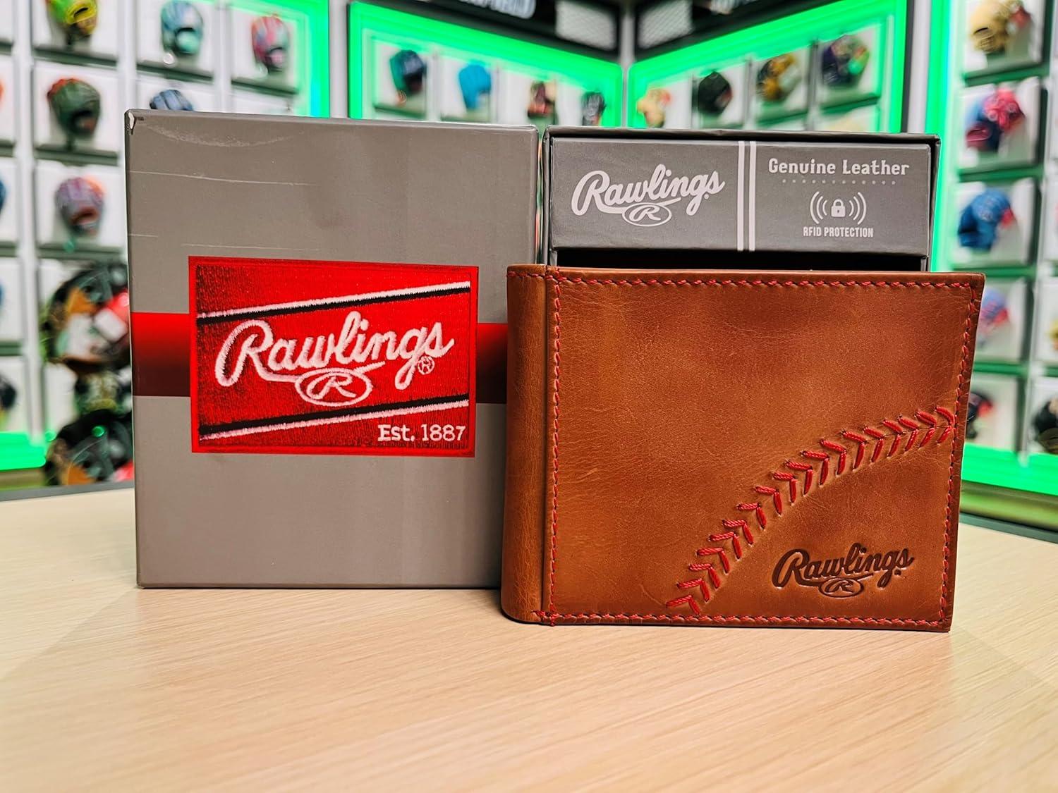 Rawlings | Men’s Bifold Wallet Collection | Genuine Leather | Multiple Styles & Colors(Light Brown | Baseball Seam Stitch)