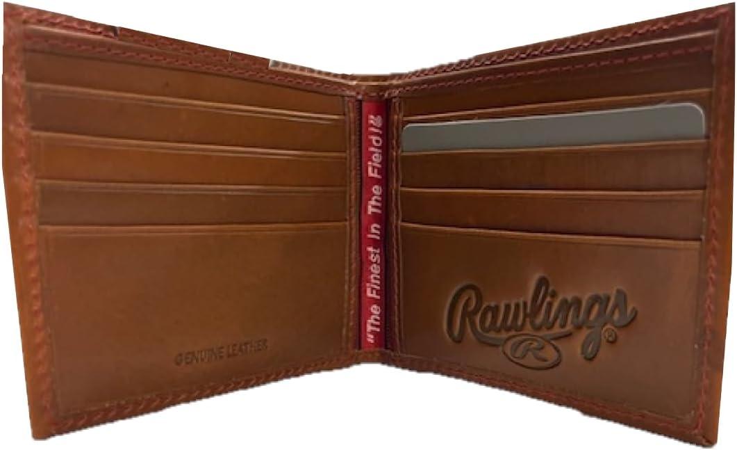 Rawlings | Men’s Bifold Wallet Collection | Genuine Leather | Multiple Styles & Colors(Light Brown | Debossed Logo)