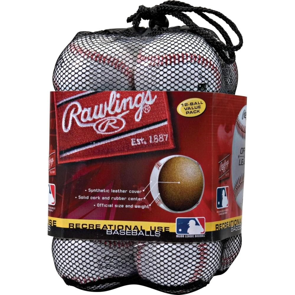 Designed for Recreational Use, this bag of 12 official league baseballs features a solid cork and rubber center, making them ideal for batting practice or casual games
