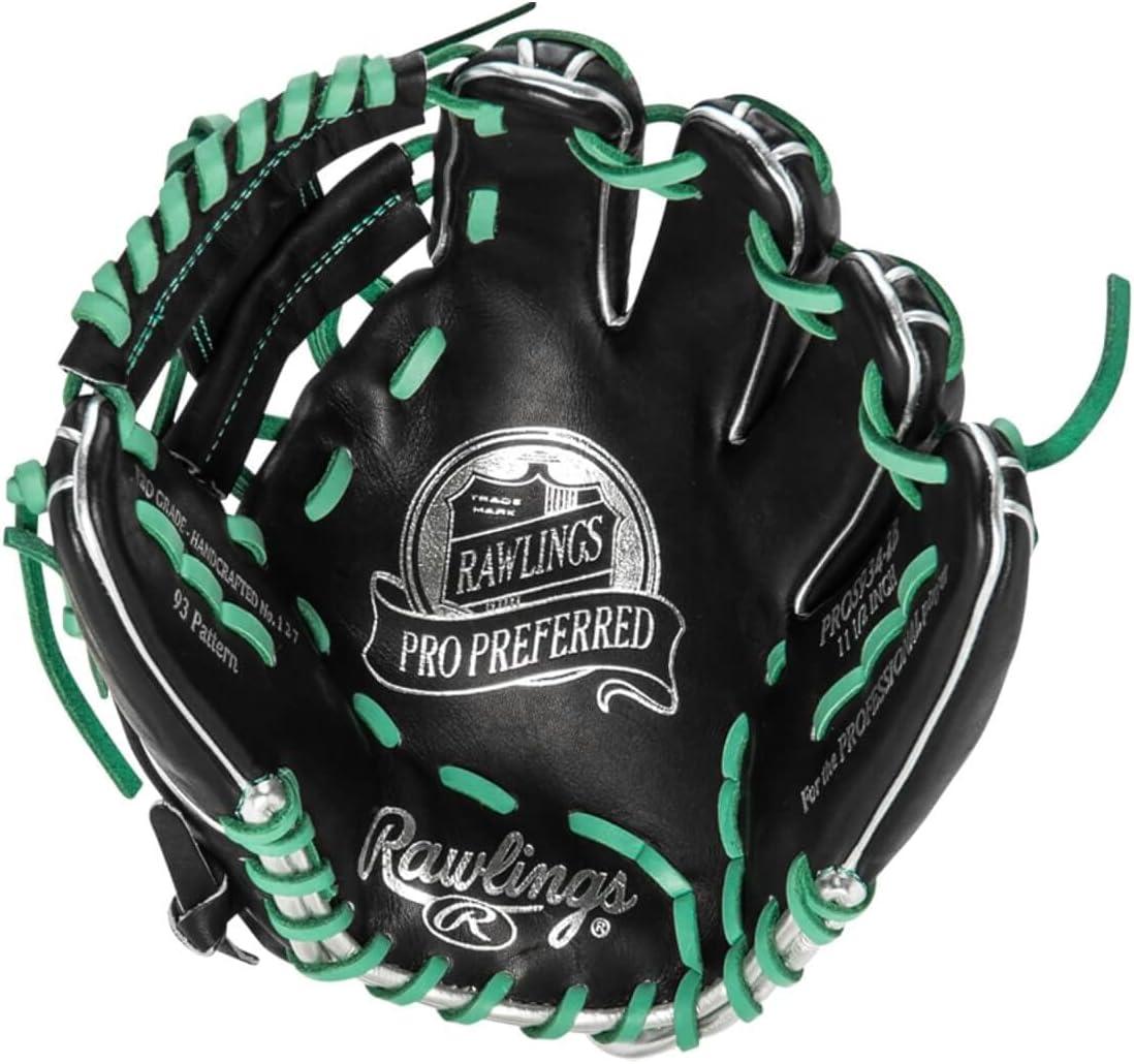 Rawlings | PRO Preferred Baseball Glove | Sizes 11.5″ – 12.75″ | Multiple Styles(Black / Mint / Silver | Pro I Web)