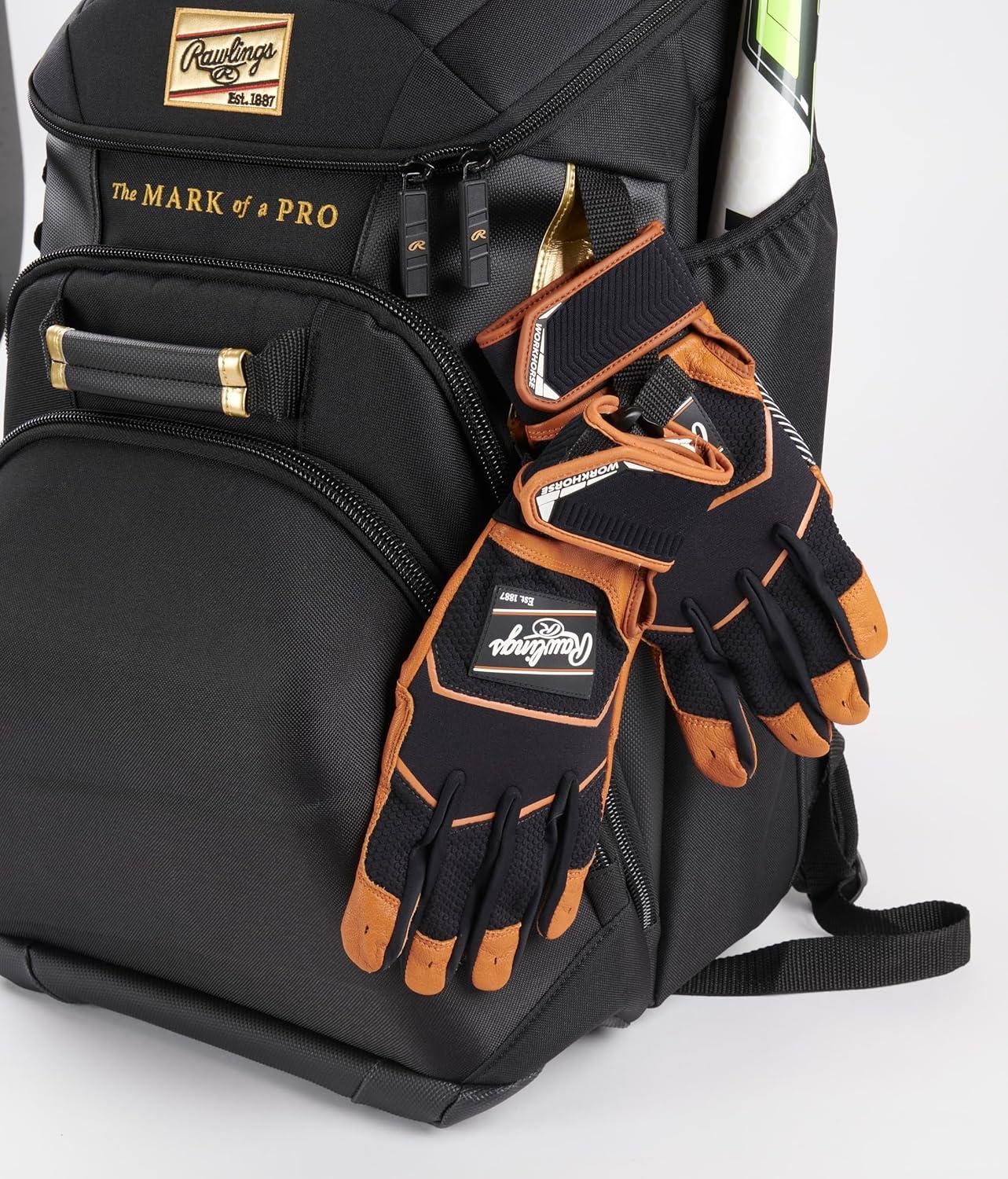 This Gold Glove® Series Backpack is the perfect bag to carry your equipment to the big game. The backpack features 2 fleece lined pockets in a valet tray for phone, accessories, etc and the main compartment converts to a game time shelf for easy access to your gear.