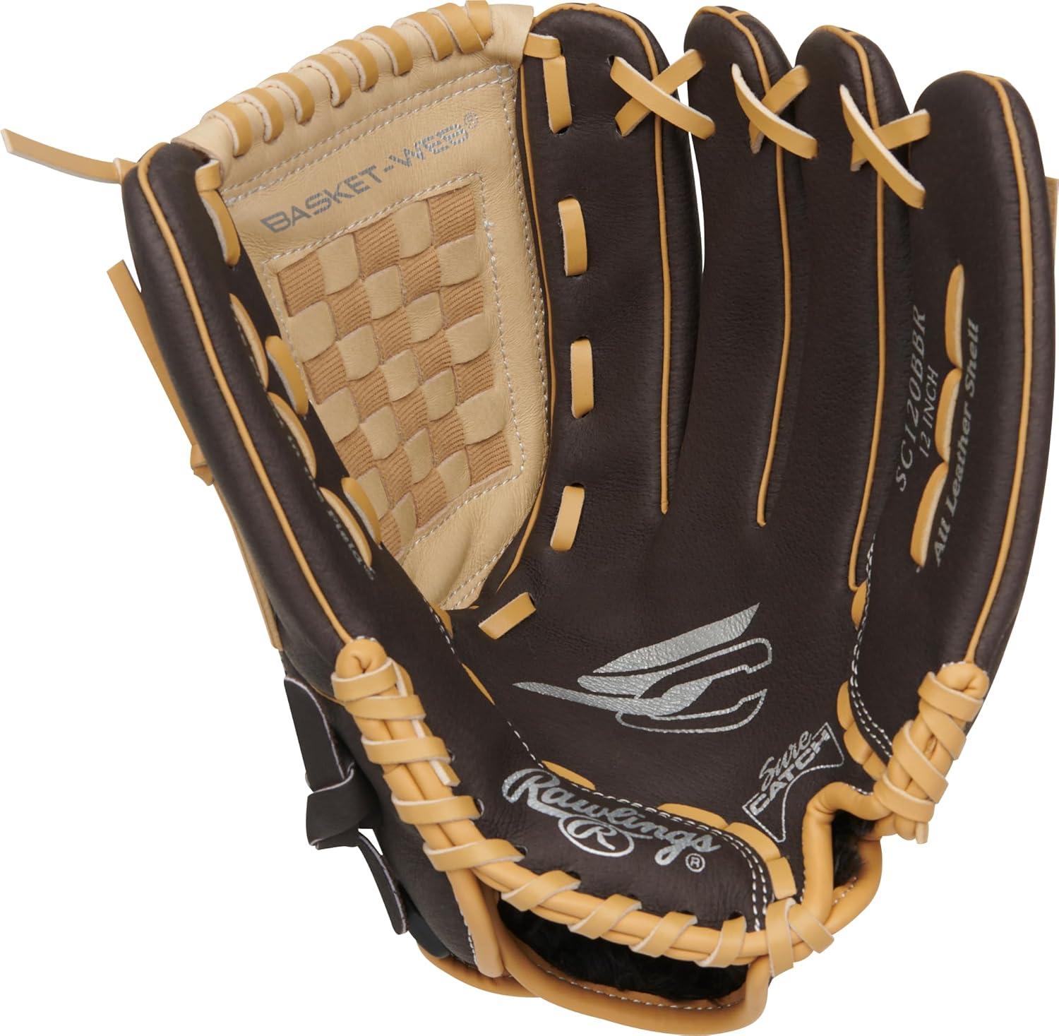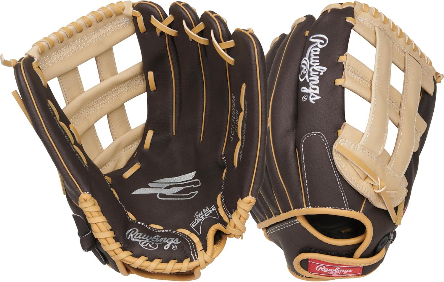 Rawlings | Sure Catch Baseball & Softball Glove | T-Ball, Youth & Adult Rec Models | Multiple Sizes & Styles(Mocha / Camel)